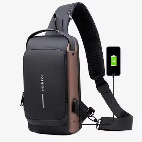 Venta al por mayor de fábrica, bolso cruzado de alta calidad, USB, impermeable, bloqueo de contraseña, antirrobo, bolso de pecho de moda para hombres